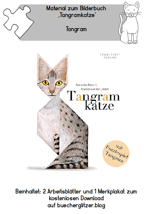 Heute stelle ich euch nach langer Zeit mal wieder ein Bilderbuch vor, welches sehr gut für den Mathematikunterricht in der Grundschule geeignet ist: Tangramkatze. Wie der Titel schon vermuten lässt, geht es in diesem Bilderbuch um Tangrams und darum, was sich mit den sieben Teilen eines Tangrams alles für Figuren und Geschichten gestalten lassen. Neben der Inspiration für Tangram-Figuren überzeugt dieses Bild durch die wunderbaren Illustrationen und die Möglichkeiten der Interaktion. Natürlich habe ich euch auch zu diesem Buch ein bisschen Material erstellt.