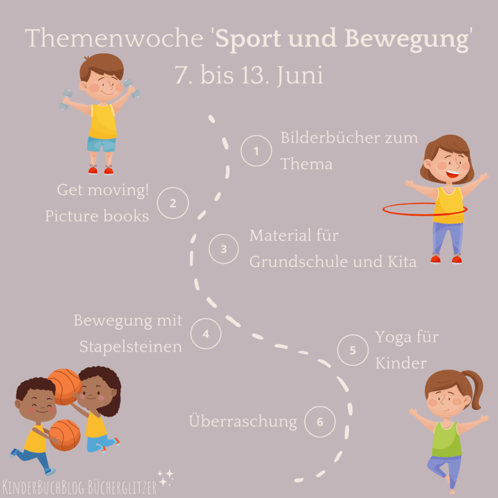 Ab morgen dreht sich auf meinem Blog und auf meinem Instagram-Account alles um die Themen Sport und Bewegung. Laut einer Statistik der WHO (Weltgesundheitsorganisation) bewegen sich 80 % der Kinder und Jugendlichen im Alter von 5 bis 17 Jahren zu wenig. Dabei ist Bewegung gerade für Kinder und Jugendliche so wichtig, denn sie fördert nicht nur die motorischen, sondern auch die kognitiven Fähigkeiten sowie die körperliche und geistige Gesundheit. Daher ist es wichtig, dass Kinder sich im Alltag wieder regelmäßiger bewegen. Dies kann sowohl Zuhause, in der Kita als auch im Unterricht gefördert werden. In der Themenwoche zeige ich euch daher einige Bilderbücher, Materialien und vielseitig einsetzbares Spielzeug zur Bewegungsförderung.