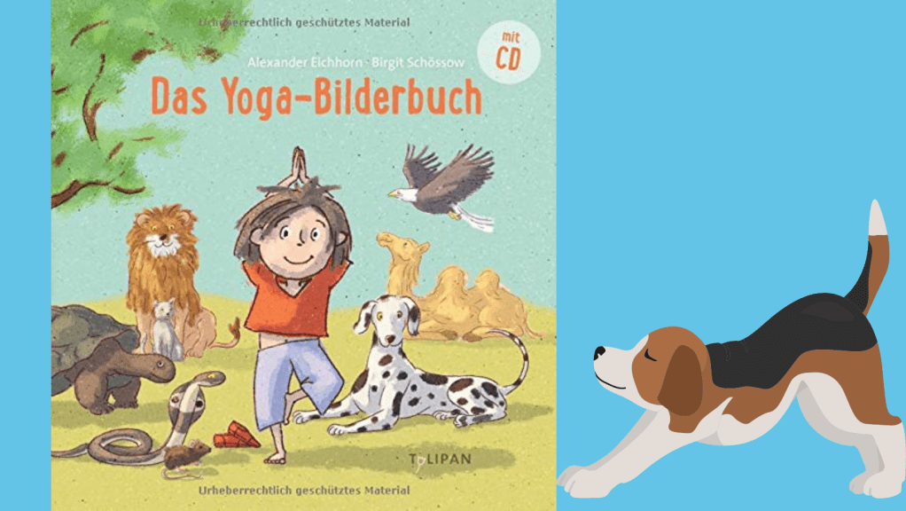 Und wer doch lieber ein Bilderbuch für etwas ältere Kinder haben möchte, dem kann ich sehr Das Yoga-Bilderbuch ans Herz legen. Zu Beginn gibt es hier ein informatives Vorwort für Eltern, Erziehungsberechtige und Pädagog*innen. Hier erfahren wir ein bisschen was über die Vorteile von Yoga, über den Aufbau des Bilderbuches und die empfohlene Durchführung der Übungen. Im Bilderbuch selbst ist dann kaum Text – pro Doppelseite wird eine Übung vorgestellt und benannt (sowohl mit dem deutschen Begriff als auch mit der offiziellen indischen Bezeichnung): Kobra – Bhujangasana. Wir begleiten ein Kind (geschlechtsneutral dargestellt) auf seiner*ihrer Reise durch die Welt des Yogas. Dabei trifft es Tiere oder Pflanzen, die das Kind zu einer gewissen Yoga-Übung inspirieren: Hundeposition, Katzenbuckel, Baum-Pose usw. Die Übungen selbst werden nicht erklärt, da die Bilder bereits sehr aussagekräftig sind. Beim Adler etwa hätte ich mir allerdings doch eine etwas detailliertere Darstellung gewünscht (etwa von der Seite und von vorne). Die Übungen werden korrekt dargestellt, wobei auch auf die richtige Stellung des Kopfes geachtet wird. Einzig die Baum-Übung wird nicht ganz korrekt dargestellt. Hier soll der Fuß nämlich nicht am Knie anliegen, sondern oberhalb oder unterhalb des Knies. Auch hätte ich mir bei dieser Übung Varianten der Armhaltung gewünscht (z.B. Hände vor der Brust). Ganz hinten im Buch gibt es zu jeder Übung noch einen kleinen Guide, wann / zu welchem Zweck diese am Besten durchgeführt werden können (z.B. wenn man müde ist oder um die Schultern zu kräftigen). Sehr ansprechend finde ich auch die Illustrationen in dezenten Farben mit den vielen Tieren. Außerdem gibt es eine Begleit-CD zur musikalisch untermalten Begleitung der Übungen – mit oder ohne gesprochene Anleitung.