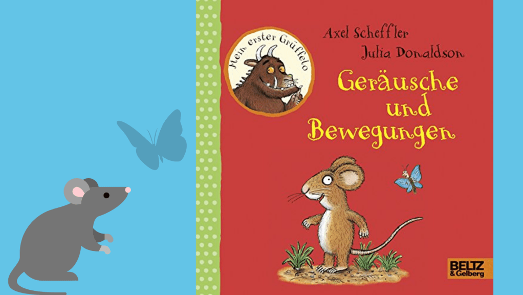 Als erstes Bilderbuch zum Thema möchte ich euch eins für die Kleinsten zeigen: Mein erster Grüffelo – Geräusche und Bewegungen. Wer die Geschichten rund um den Grüffelo kennt und liebt, kann an diesem kleinen Pappbilderbuch nicht vorbeigehen! So war es auch bei mir, als ich dieses Schätzchen entdeckt habe. Mit kurzen, kindgerechten Sätzen wie „schweben wie ein Schmetterling“ oder „kriechen wie eine Schnecke“ und den wie immer zauberhaften Illustrationen von Axel Scheffler lernen die Kinder nicht nur die ersten Waldtiere (und natürlich auch den Grüffelo) kennen, sondern können dabei auch noch mitmachen. Ob Bewegungen oder typische Tiergeräusche – hier ist Spaß vorprogrammiert. Und vielleicht kann dieses Bilderbuch ja auch in einem Deutschförderkurs in der Kita oder sogar in der Grundschule noch eingesetzt werden – zum Beispiel als Einstieg in die Stunde. Hier könnte das Buch dann noch durch weitere Tiere und ihre typischen Geräusche / Bewegungen ergänzt werden, etwa ’stampfen wie ein Elefant‘ oder ‚bellen wie ein Hund‘.