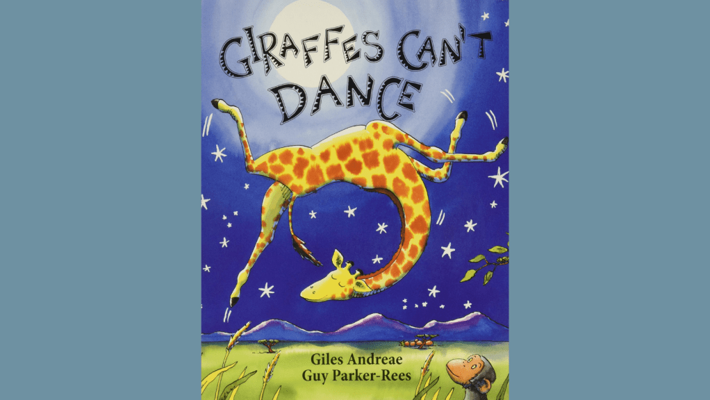 Ein Bilderbuch, dessen Cover mich schon sehr lange angesprochen hat, ist Griaffes Can’t Dance. Da ich es liebe, zu tanzen und auch Kinder gerne zu ansprechender Musik tanzen, finde ich das Bilderbuch super geeignet, um Bewegung in den Englischunterricht zu integrieren. In der Geschichte, die vom Text her schon umfangreicher ist als die anderen Bilderbücher, geht es um die Giraffe Gerald, die sehr gerne beim Dschungel-Tanz tanzen würde. Doch leider kann er sich wegen seiner langen Beine nicht so geschmeidig bewegen wie die anderen Tiere. So tanzen die Löwen Tango, die Nashörner Rock ’n Roll und die Schimpansen Cha Cha Cha. Als Gerald die Tanzfläche betritt, fangen alle an zu lachen und er geht beschämt weg. Auf seinem Weg trifft er dann eine Grille, die ihm Mut macht und ihm sagt, worum es beim Tanzen wirklich geht. Das Bilderbuch ist daher nicht nur super, um Kinder zum Ausprobieren verschiedener Tanzstile zu motivieren, sondern hat auch eine wichtige Message: Glaube an dich und deine Fähigkeiten – denn: Jede*r kann tanzen – entscheidend ist nur die richtige Musik.