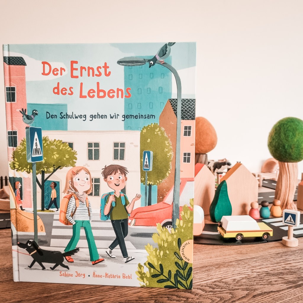 Es ist wichtig, dass Kinder früh lernen, welche Regeln es im Straßenverkehr gibt oder worauf sie zu besonders zu achten haben. Die Verkehrserziehung beginnt in den meisten Fällen bereits im Elternhaus, etwa beim familiären Spazierengehen („Was machst du, bevor du über die Straße gehst?“) sowie im Kindergarten. Aber auch in der Grundschule spielt die Verkehrserziehung eine wichtige Rolle – insbesondere in der 1. Klasse, wenn es um den Schulweg geht. Lange Zeit war ich auf der Suche nach einem Bilderbuch, das das Thema kindgerecht für Erstklässler*innen im Rahmen einer Geschichte aufgreift und vermittelt. Vor Kurzem ist das Buch Der Ernst des Lebens – Den Schulweg gehen wir gemeinsam erschienen, in dem es genau darum geht. In diesem Beitrag stelle ich euch das Buch sowie geeignetes Material / Spielzeug für die Verkehrserziehung im Kindergarten und in der Grundschule vor.