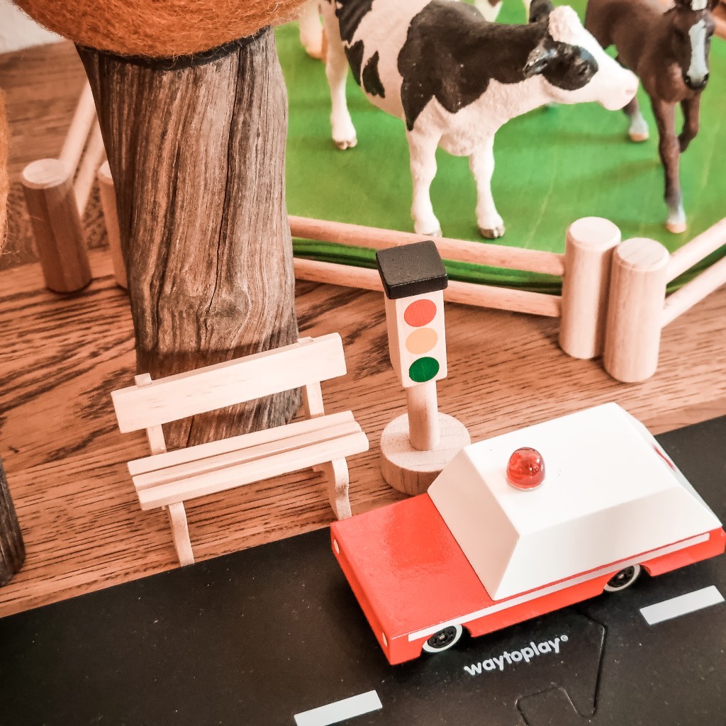 Außerdem haben wir beim Aufbau des Schulweges auch die Holzbausteine von Kapla miteinbezogen – dieses open-ended Spielzeug ist einfach ganz vielseitig einsetzbar und so können damit zum Beispiel Eisenbahnschienen gelegt, Zäune oder Häuser gebaut werden. Die Holzbausteine können in der Grundschule aber auch sonst ganz vielfältig eingesetzt werden – dazu gibt es bald noch einen ausführlichen Beitrag auf Instagram.