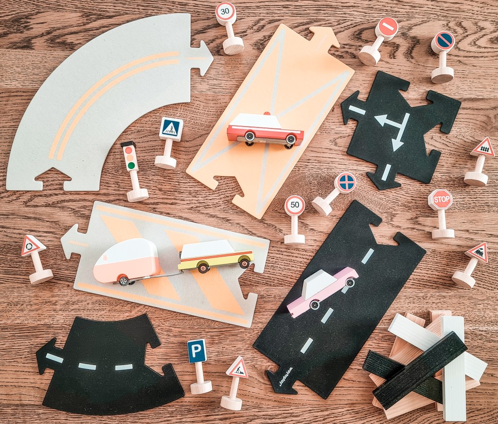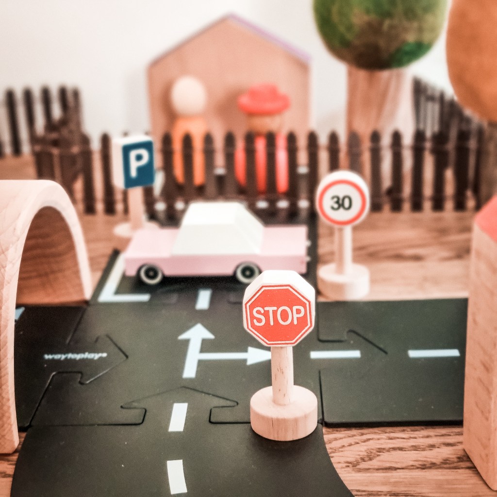 Außerdem gibt es bei Holzflitzer auch die Spielstraßen von Waytoplay, die in vielen Kinderzimmern nicht mehr wegzudenken sind – und definitiv auch in Kita, Kindergarten und Grundschule gut aufgehoben sind. Straßen bauen und mit Autos darüber fahren, Wettrennen machen oder Autos einen Berg herunter fahren lassen macht definitiv in jedem Alter Spaß. Gleichzeitig können die Straßen in der Grundschule ganz vielseitig eingesetzt werden – zum Übung von Wegbeschreibungen, etwa im Englischunterricht oder in der Deutschförderung, sowie natürlich zum Nachlegen des eigenen Schulweges und zum spielerischen Üben von Straßenverkehrsregeln. Die Spielstraßen gibt es in unterschiedlichen Sets und außerdem in den Materialien PVC (langlebig und stabil) sowie aus recycelter Pappe. Hergestellt werden die Straßenteile in Deutschland. Die Straßen aus PVC können nahezu überall verwendet werden: im Haus, im Garten, am Strand, im Sandkasten, in der Badewanne …